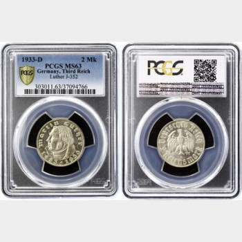 2 Marka 1933 - D - Třetí Říše Martin Luther PCGS MS 63