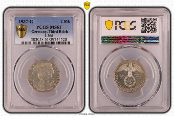 2 Marka 1937 G - Třetí Říše PCGS MS 61