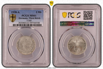 2 Marka 1938 A - Třetí Říše PCGS MS 61