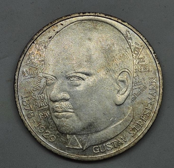 Německo 5 marek, 1978 - 100. výročí - Narození Gustava Stresemanna - Ag 625/1000, 11,2g, 29mm