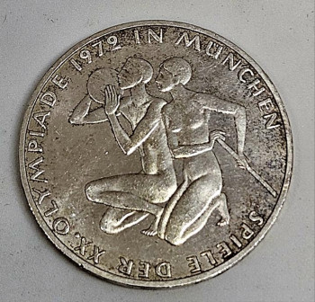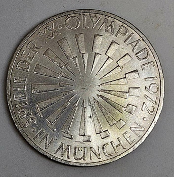 10 marek, 1972 XX. letní olympijské hry, Mnichov 1972 - Plamen Ag 625/1000, 15.5g, ø 32.5mm