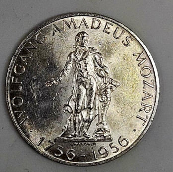 Rakousko 25 šilinků, 1956 - 200. výročí narození Wolfganga Amadea Mozarta - Ag 800/1000,13 g, 30mm