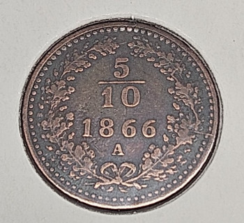 5/10 Krejcar - 1866 A - Cu, 17mm, 1,6g