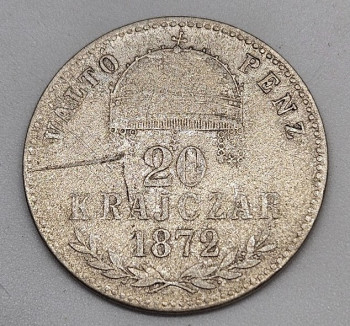20 Krejcar - 1872 K.B. - Ag 500/1000, 21mm, 2,6g
