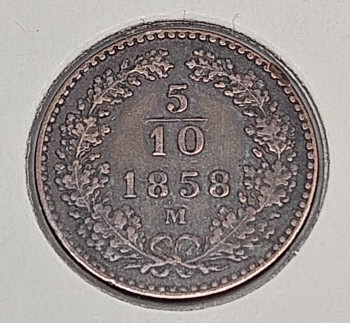 5/10 Krejcar - 1858 M - Cu, 17mm, 1,6g