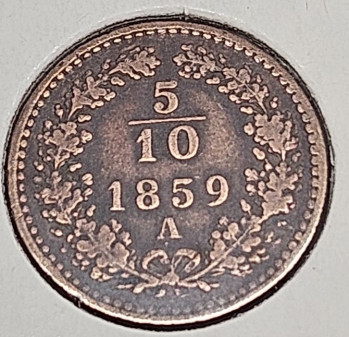 5/10 Krejcar - 1859 M - Cu, 17mm, 1,6g