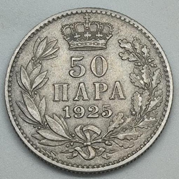 Jugoslávie 50 Para 1925 - Měď-nikl, 2.6g, ø 18mm