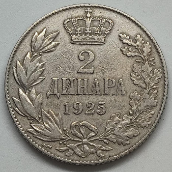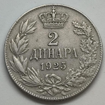 Jugoslávie 2 Dináry 1925 - Nikl/Bronz, 8g, ø 27mm (2)