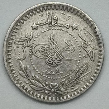 Osmanská říše 5 para, 1327 (1909) - Nikl, 1,6g, 16,8mm - Sultán Mehmed V. (1909 - 1918)