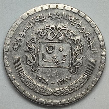 Sýrie - 50 piastrů 1968 - Nikl, 5g, 23,4mm