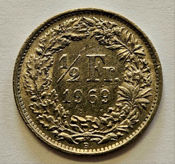 Švýcarsko 1/2 Frank 1969 - Copper/Nickel, 2,2g, 18mm