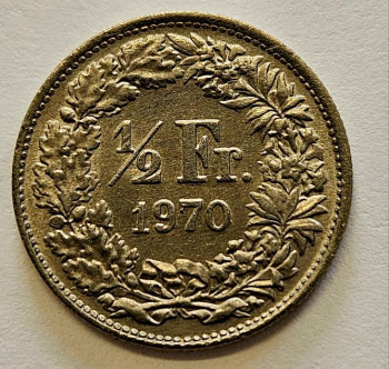 Švýcarsko 1/2 Frank 1970 - Copper/Nickel, 2,2g, 18mm