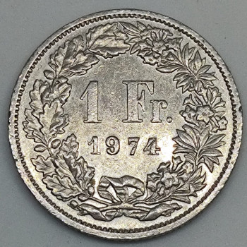 Švýcarsko 1 Frank 1974 - Copper/Nickel 4,4g, 23mm