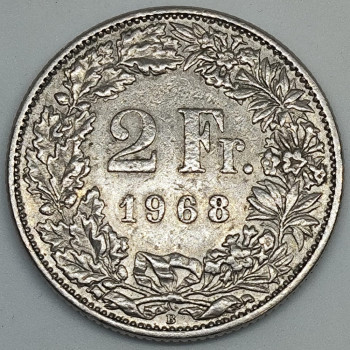 Švýcarsko 2 Franky 1968 - Copper/Nickel 8,8g, 27mm