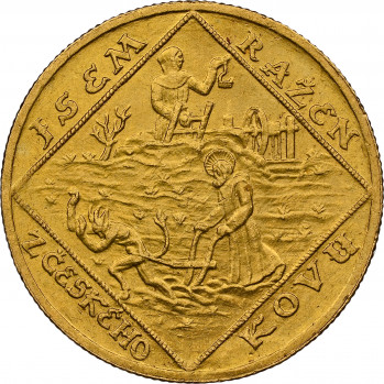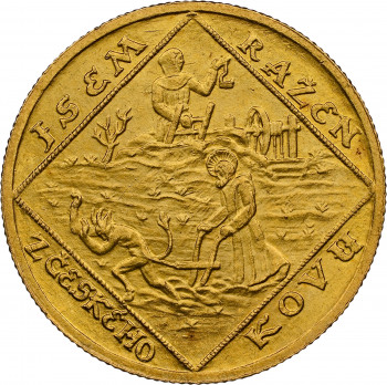 Dvoudukátová Au medaile Jsem ražen s Českého kovu - NGC MS65 - 1928 (O. Španiel) - 10. výročí vzniku republiky. Český lev ve štítě, nad ním kníže Václav v čele Blanických rytířů / Sv. Prokop orá s čertem. Au 22 mm (6,89 g)