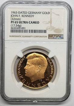 J.F.Kennedy - 5 dukátová úmrtní medaile 22.XI.1963 - NGC PF 65 ULTRA CAMEO RR - velmi vzácná medaile