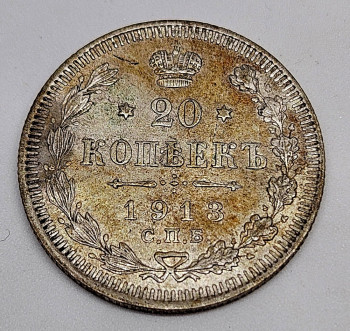 Rusko 20 Kopějka 1913, Ag 500/1000, 3,6g