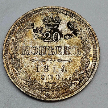 Rusko 20 Kopějka 1914, Ag 500/1000, 3,6g