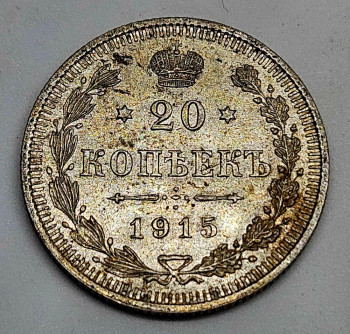 Rusko 20 Kopějka 1915, Ag 500/1000, 3,6g