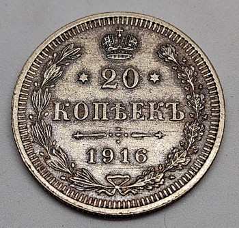 Rusko 20 Kopějka 1916, Ag 500/1000, 3,6g