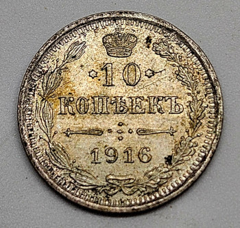 Rusko 10 Kopějka 1916, Ag 500/1000, 1,8g