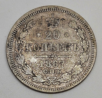 Rusko 20 Kopějka 1867, Ag 500/1000, 3,6g