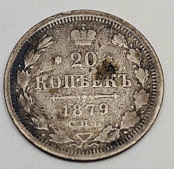 Rusko 20 Kopějka 1879, Ag 500/1000, 3,6g