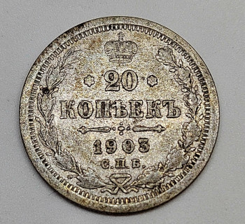 Rusko 20 Kopějka 1903, Ag 500/1000, 3,6g