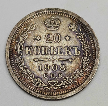 Rusko 20 Kopějka 1908, Ag 500/1000, 3,6g