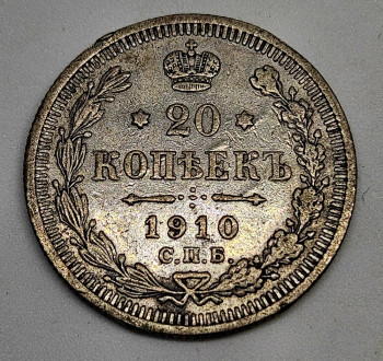Rusko 20 Kopějka 1910, Ag 500/1000, 3,6g