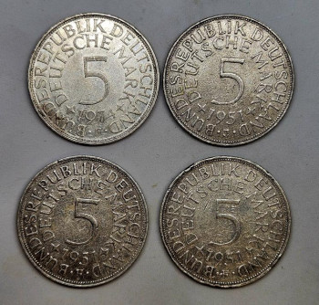 Lot 4x Ag 5 Marka - 1951 - 1974 - Ag 625/1000, 11,2g, 29mm