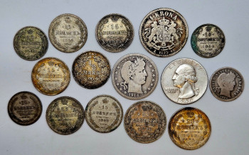Lot 15 kusů Ag historických mincí - U.S.A.- RUSKO - Německo - Švédsko