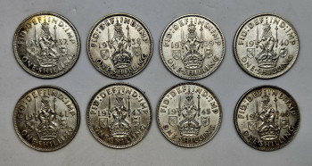 Velká Británie 1 šilink - 1937, 38, 39, 40, 41, 43, 45, 46 - Skotský erb, lev sedící tváří v tvář na vrcholu koruny - Ag 500/1000, 5,66g, 23,59mm