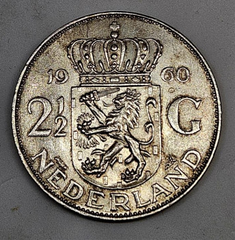 Holandsko - 2½ guldenu 1960, Ag 720/1000, 15g, 33mm