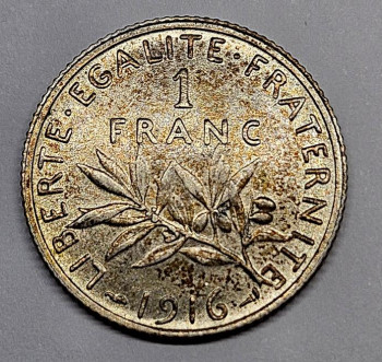 Francie - 1 Francs 1916 - Ag 835/1000, 5g, 23mm
