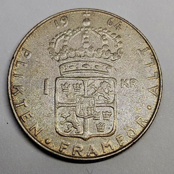 Švédsko - 1 Koruna 1964 - Ag 400/1000, 7g, 25mm