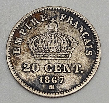 Francie - 20 Centimes 1867 BB - Ag 835/1000, 1g