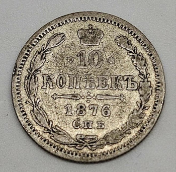Rusko 10 Kopějka 1876, Ag 500/1000, 1,8g