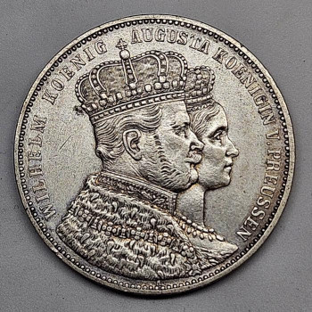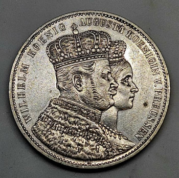 Korunovační Tolar 1861 Prusko Wilhelm a Augusta  33mm, 18,52g, Ag 900/1000 (2)