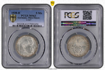 Německo - Třetí říše 5 Reichsmark 1938 D PCGS MS63