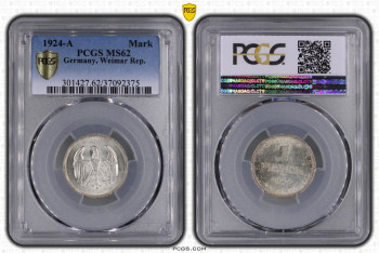 Německo - Weimar Republic 1 Mark 1924 A PCGS MS62