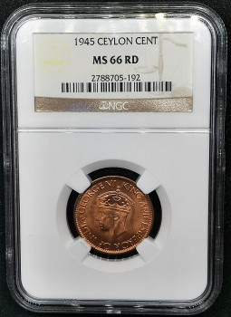 CEYLON 1 CENT 1945 MS 66 RD -TOP POP
