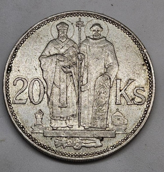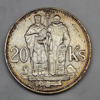 20 Koruna Slovenská 1941, Ag 500/1000, 15g, 31mm - jednokříž