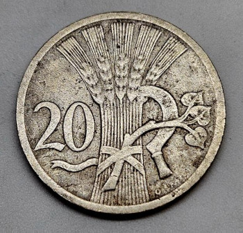 20 haléř 1929 - Cu/Ni, 3,33g, 20mm