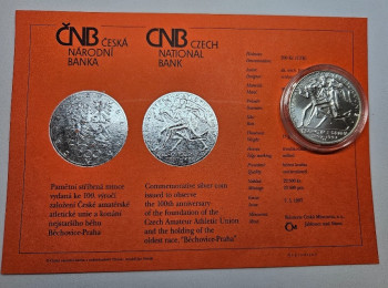 ČNB 200Kč 1997 - 100. výročí založení České amatérské unie Běchovice - Praha , 31mm, 13g, Ag 900/1000, B.K. - mince v plastové etue+certifikát viz.foto.
