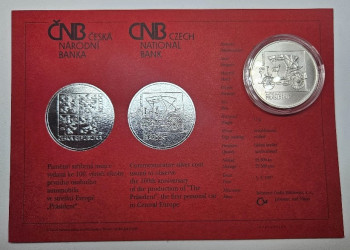 ČNB 200Kč 1997 - 100. výročí výroby prvního osobního automobilu ve střední Evropě - 31mm, 13g, Ag 900/1000, B.K. - mince v plastové etue+certifikát viz.foto.