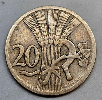 20 haléř 1925 - Cu/Ni, 3,33g, 20mm - RR! - Vzácný!