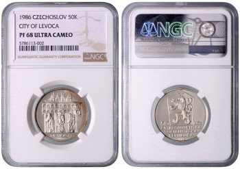 50 Kčs Levoča, 1986, Kremnica. MCH CSSRP-059 PROOF , NGC PF 68 ULTRA CAMEO