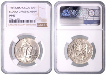 10 Kčs 10. Výročí Slovenského národního povstání, 1954, Kremnica. MCH CSR2P-009 PROOF , NGC PF 67