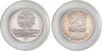 25 Kčs 25. výročí osvobození ČSR, 1970, 10g, Kremnica. MCH CSSRP-012 PROOF